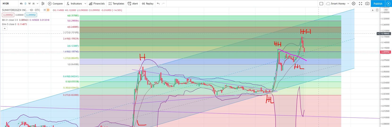 Ich habe mir vorgenommen, bei den "dips" (HL) immer ein bisschen nachzukaufen. Natürlich ist es nicht immer einfach, den genauen Zeitpunkt zu treffen, wenn sich der Preis am unteren Rand des blauen Aufwärtstrend-Kanals befindet. Aber meiner Meinung nach werden wir nicht mehr tiefer als 7,5 US Cent fallen. Es kann aber noch 2 bis 4 Monate volatil seitwärts gehen, bis dann die Pilotanlage präsentiert wird. Ich versuche - wie gesagt - unten nachzukaufen. Der Aufwärtstrend ist aber noch vorhanden.
