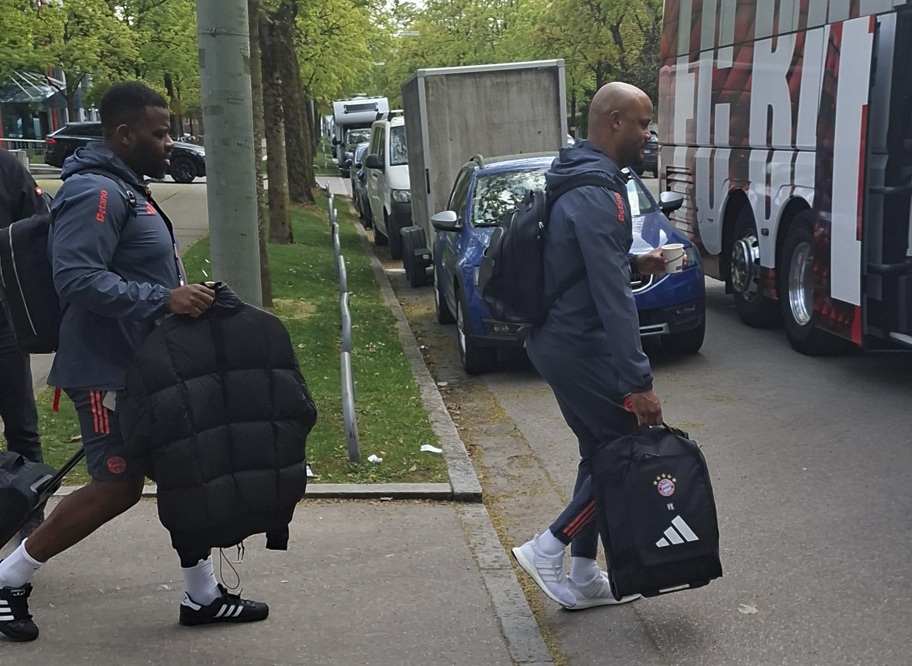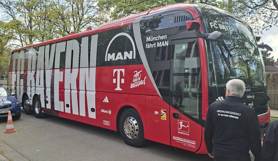 Frage: wer kennt diese Herren ?, vorne laut eines Kiebitz neben mir: Kompany, aber der andere ? -- links  ist die eigentliche Einfahrt, da stand auch noch ein Bus, aber diese beide waren tatsächlich die Letzten die ich noch einfangen konnte, bevor der Bus dann abfuhr.