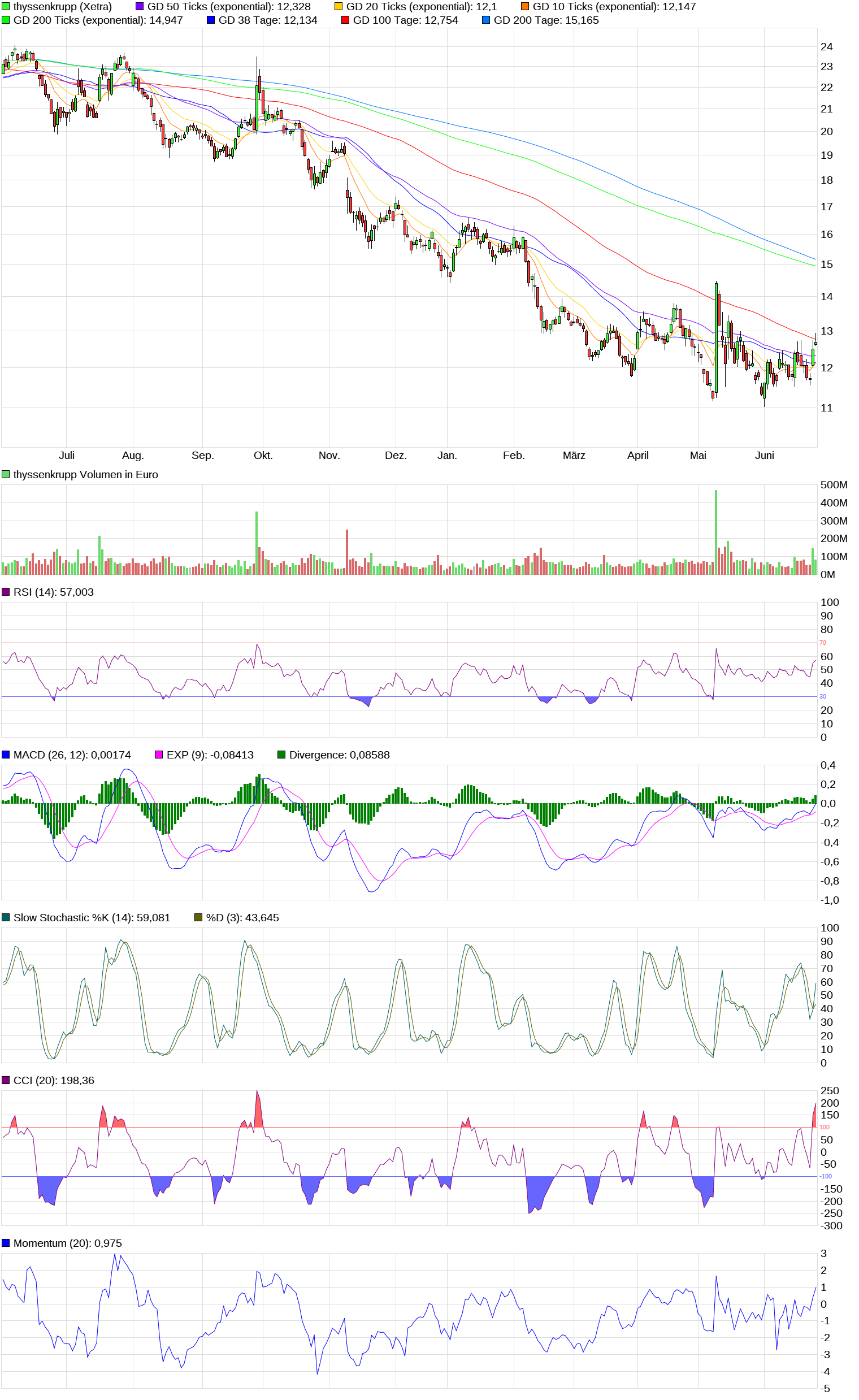 Auf Monatssicht ist ThyssenKrupp gerade eben beim Kurs von 12,70 mit einem Plus von 4,6 % bereits der viertbeste DAX-Wert. Auf Sicht von einer Woche hat sich ThyssenKrupp mit +2,88 % damit sogar den zweiten Platz aller DAX-Werte erobert. Wahrscheinlich wird dies auch Momentumtrader verstärkt anziehen.