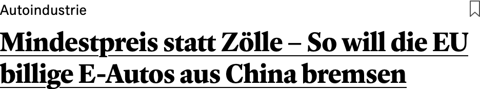 eu und china lösen auto-zoll-disput und vereinbaren mindestpreise. tönt gut ist aber in wahrheit eine lupenreine kartellabsprache. alle gewinnen ausser die konsumenten, die zahlen das nämlich...