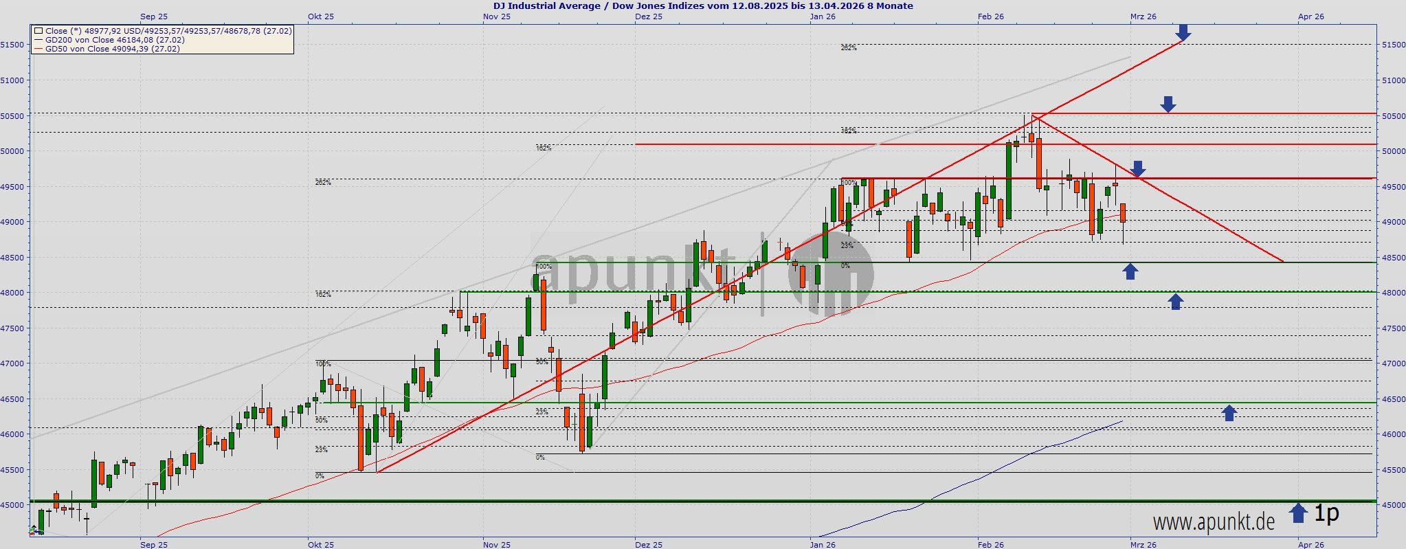 In der aktuellen Lage ist sogar ein Durchrutschen bis 45.000 Punkten (1p) wahrscheinlicher geworden. Tiefer sollte es kaum gehen.