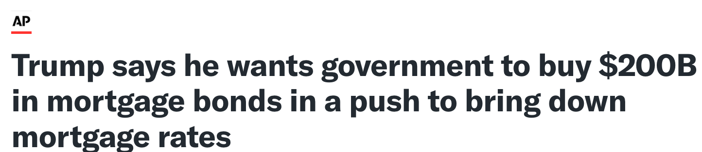 trump lässt besicherte hypothekenpapiere im wert von 200 mrd dollar kaufen, er will so die hypozinsen runterbringen. stiichworte: affordability, mid term wahlkampf. der us immomarkt ist hot! meine hoch-divi-reits freuen sich alle und ich mich mit...