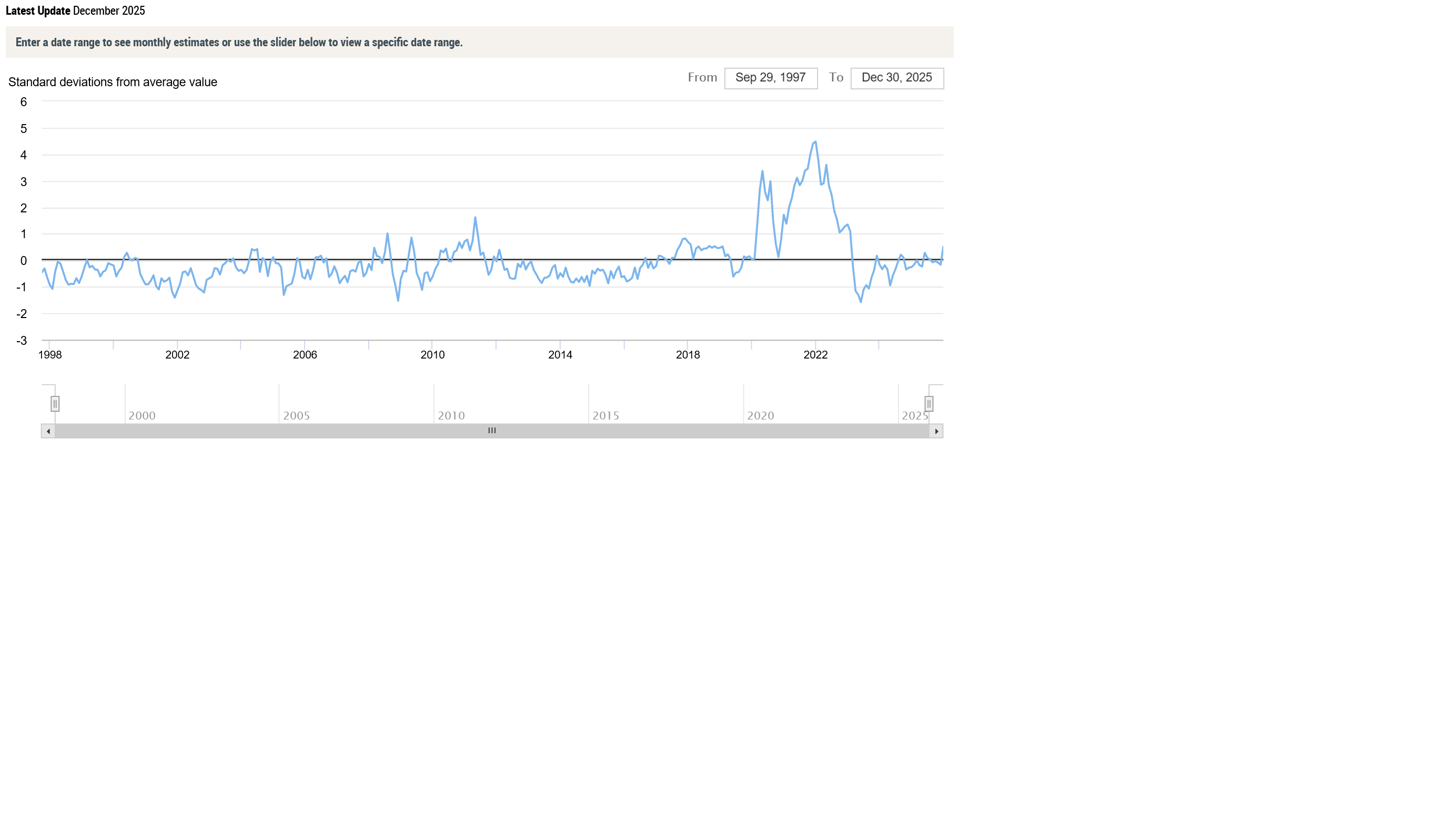 Zitat: "Estimates for December 2025 The GSCPI rose to 0.51 in December, up from -0.17 in November (revised down from an initial reading of -0.16). GSCPI readings measure standard deviations from the index’s historical average. Due to the government shutdown, four datapoints are missing from the October and November revisions. These are the BLS Air Freight Indexes for Europe and Asia (inbound and outbound)."